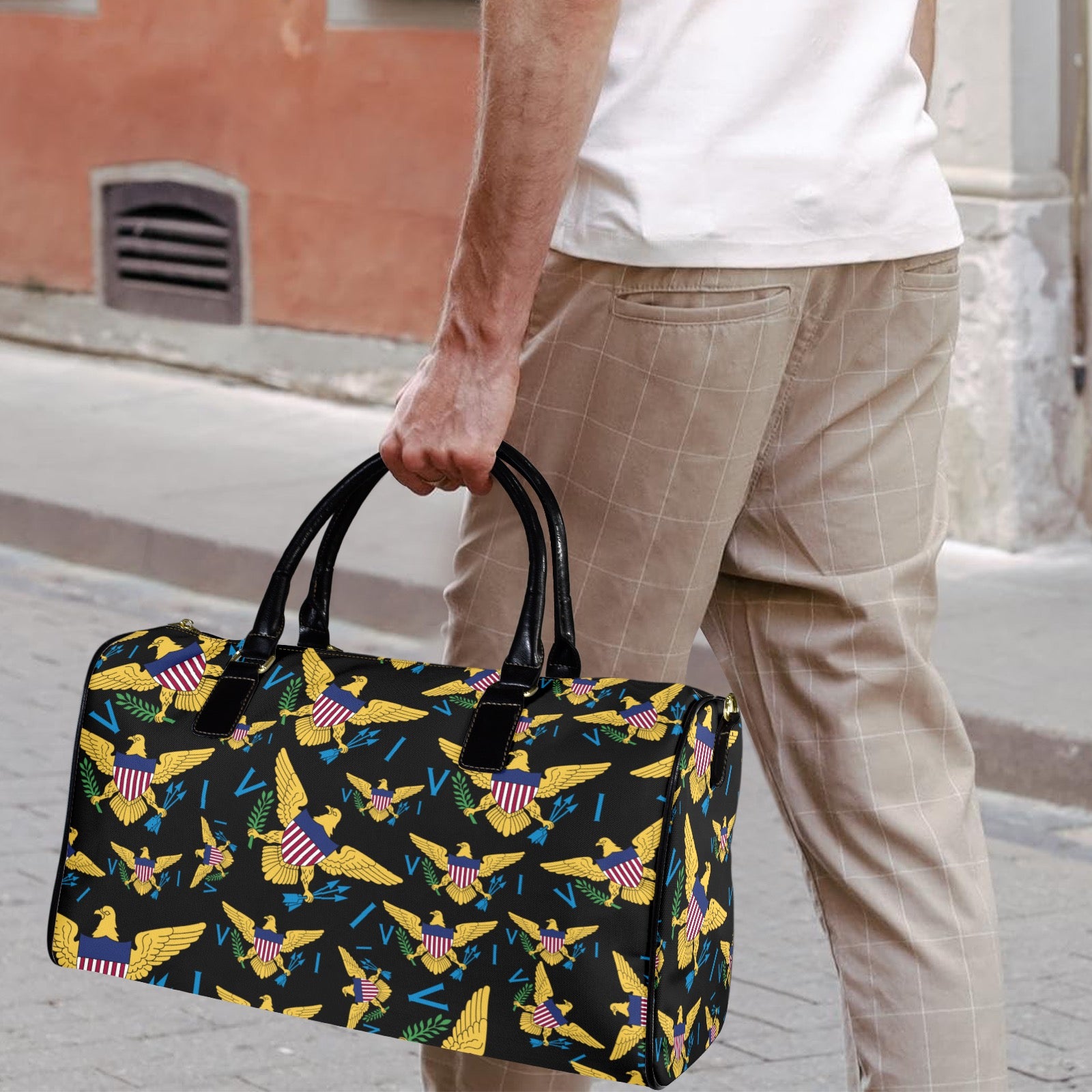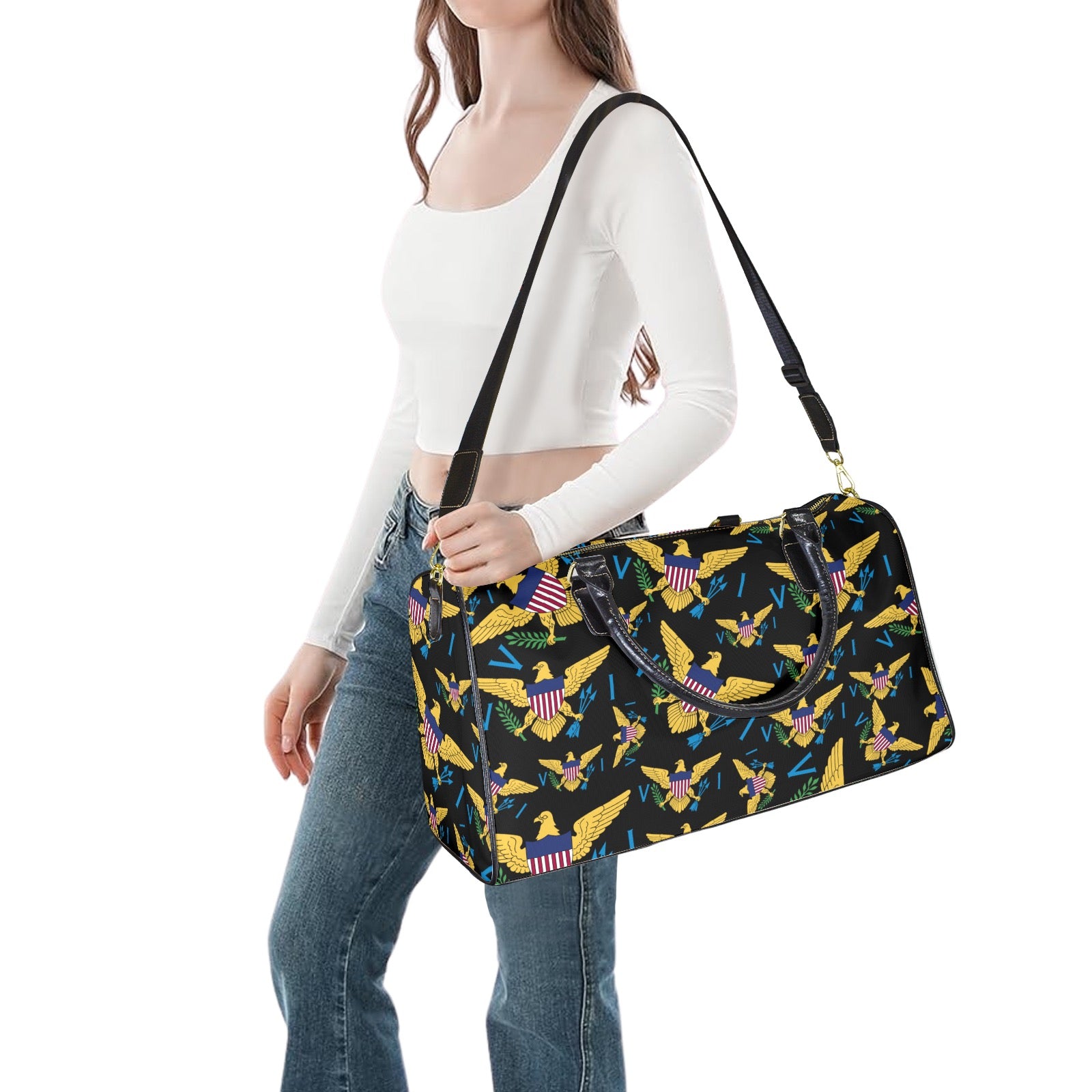With the VI Large Duffle Travel Bag, traveling is a breeze! Made of durable 1200D nylon and featuring a PU leather top handle, this bag is perfect for short or long trips. The spacious main compartment and adjustable shoulder strap make it easy to pack all your essentials. Just wipe clean and you're good to go!