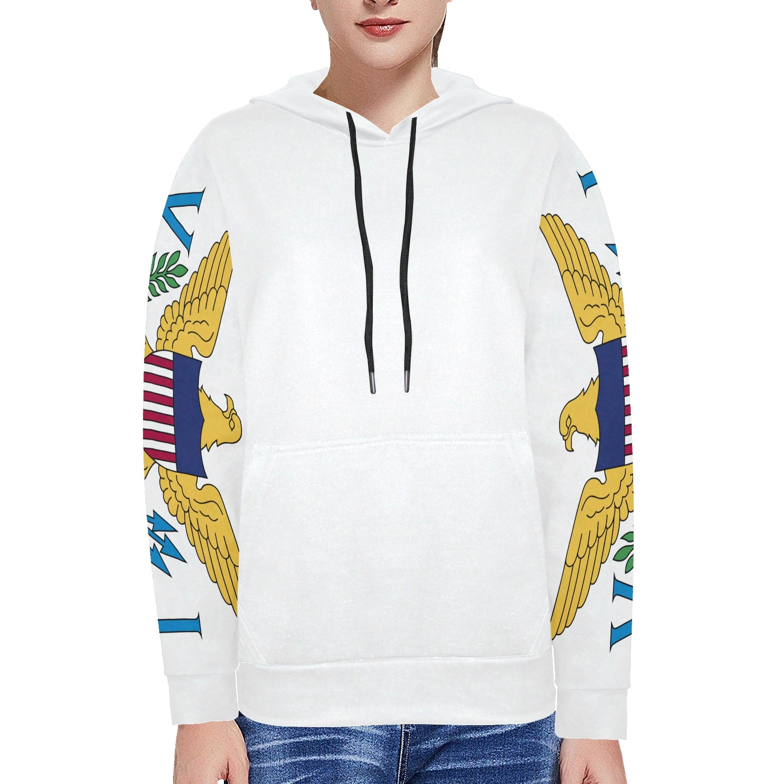 VI Flag Sweatshirt_Sleeves Only Women's Long Sleeve Fleece Hoodie (Model H55)